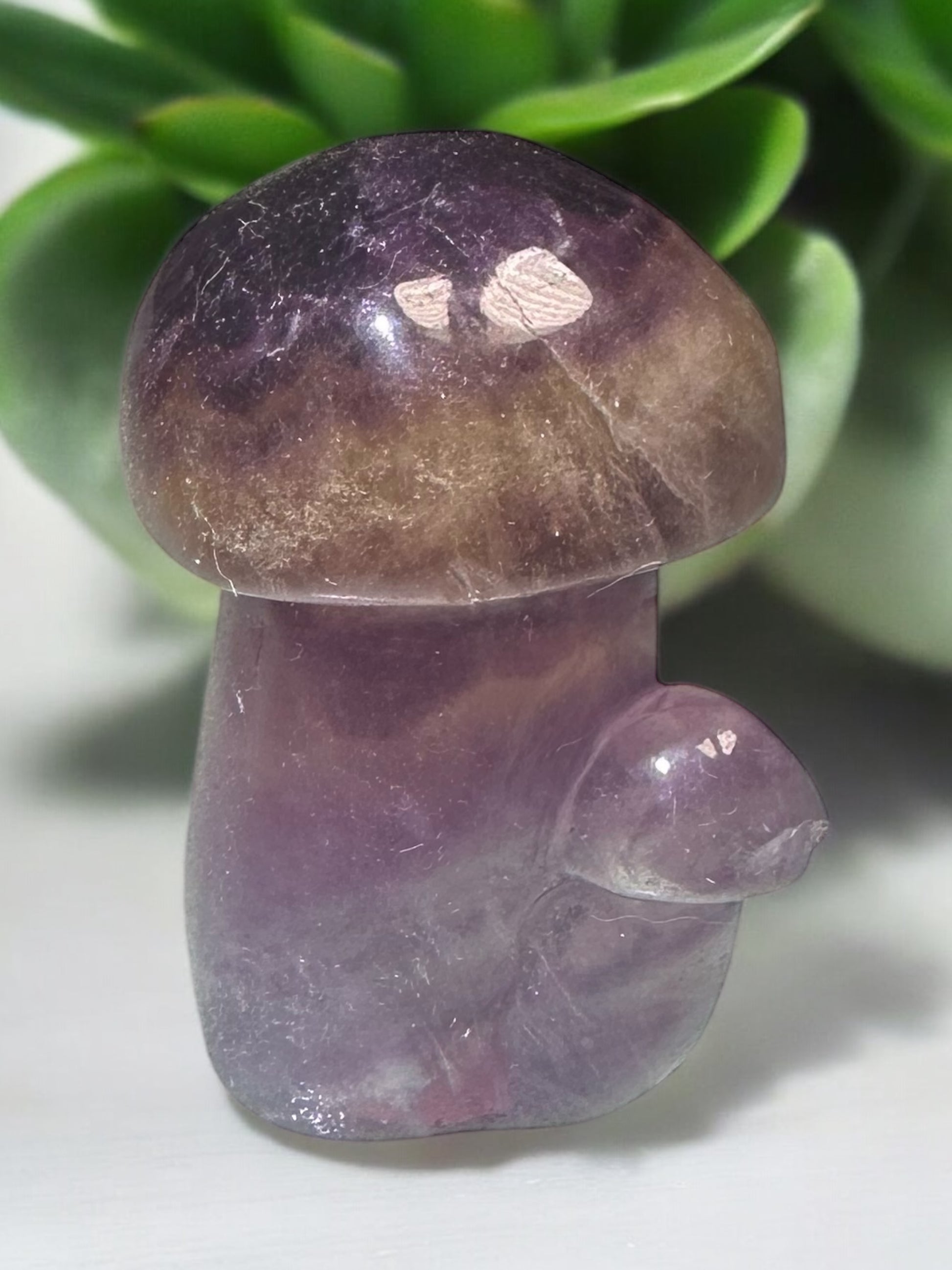 Mushrooms symbolize growth, transformation, and connection to nature’s wisdom. When paired with fluorite, these carvings amplify personal growth and spiritual transformation, making them ideal for meditation, manifestation, or as a unique decorative piece.